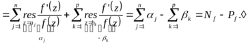 Замечание. Число нулей и число полюсов считается с учётом кратности. В условии теоремы и нулей, и полюсов конечное число по теореме о единственности и определению мероморфности.