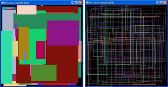 Этот простой пример предназначен для демонстрации структуры GLUT-приложения и простейших основ OpenGL. Результатом работы программы является случайный набор цветных прямоугольников, который меняется при нажатии левой кнопки мыши. С помощью правой кнопки мыши можно менять режим заливки прямоугольников.