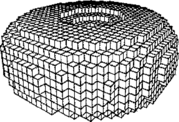 В компьютерной графике используется большое количество разнообразных моделей для описания формы. Причиной этого является очевидная невозможность полностью оцифровать реальный объект. Следовательно, необходимо выбирать те особенности объекта, которые важны для конкретной задачи и заданного класса объектов. В частности, модели можно поделить на объемные и граничные. Объемные модели позволяют описать внутренность объекта, а граничные — геометрические свойства поверхности. Пример объемной модели показан на рисунке 1.2.