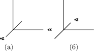 Рис. 4.1. Системы координат в OpenGL. (a) — правосторонняя, (б) — левосторонняя, (в) — оконная.