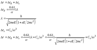 №11 Какое оптимальное разрешение можно получить на электронном микроскопе с ускоряющим напряжением 100kV, если учесть дифракционную ошибку и сферическую аберрацию. Угловая апертура объективной линзы