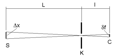 №3 Рассчитать необходимую ширину щели коллиматора для выделения К1 линии в методе Ланга. Исследуемый кристалл - кремний, а=5,4306Å; отражение (220); расстояние от источника до выходной щели коллиматора 450мм; источник - точечный. Длины волн K1=0,70926Å; K2=0,71354Å