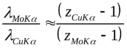 18. Длина волны K-серии меди K=1,540Å. Определить длину волны K-серии молибдена, если zCu=29, zMo=42.