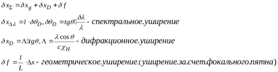 №6 Оценить пространственное разрешение на рентгеновской топограмме снятой по методу Ланга. Излучение MoK1 (=0,70926Å), расстояние образец - фотопластинка l=10мм, размеры источника x=30мкм, расстояние источник - щелб L=450мм, используемое отражение (220), фурье-компанента поляризуемости кристалла для этого случая (220)=(2.04+i0.017)10-6.