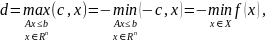 Таким образом, доказано, что если задача ЛП разрешима, то разрешима и двойственная к ней, и в случае разрешимости значения этих задач совпадают: