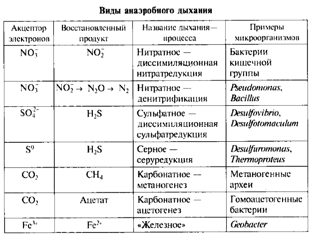 Анаэробное дыхание. Определение понятия "анаэробное дыхание". Доноры и акцепторы электронов, используемые разными микроорганизмами при анаэробном дыхании. Микроорганизмы, востанавливающие нитраты и другие соединения азота. Диссимиляционная нитратредукция и денитрификация.