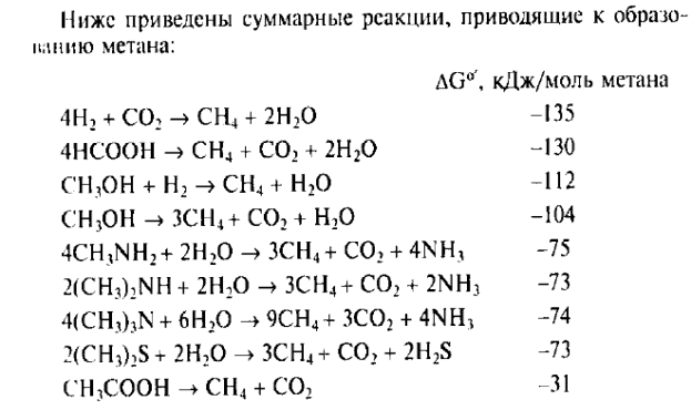 Классы Methanobacteria, Methanococci, Methanopyri включают метаногенных архей, образующих метан на Н2/СО2, формиате, ацетате, метаноле, метиламинах и ЬЬ/метаноле. Представители сем. Mcthanosaetaceae используют в качестве субстрата метаногенеза преимущественно ацетат.