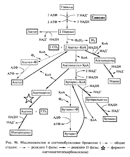 Молочнокислое гомо- и гетероферментативное брожение, пропионовокислое, маслянокислое ацетонобутиловое, спиртовое и другие брожения