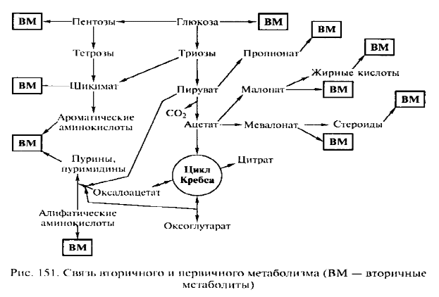 Вторичные метаболиты — это вещества микробного (или растительного) происхождения, не существенные для роста и репродукции образующего их организма. Каждый вторичный метаболит производится относительно ограниченным числом видов.