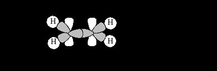 Одним из экспериментальных доказательств именно такой структуры этилена является торсионная жесткость двойной связи, т.е. отсутствие свободного вращения вокруг С=С-связи. Это обусловлено тем, что при вращении одной метиленовой группы относительно другой уменьшается перекрывание р-орбиталей, т.е. ослабляется (а при повороте на 90о исчезает совсем) -связь. В этилене энергия -связи составляет 65 ккал/моль - это очень высокий барьер, препятствующий внутримолекулярному вращению.