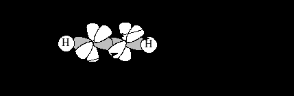 sp-Гибридизация. Молекула ацетилена (этина) НССН еще более ненасыщена, чем этилен. Ее электронная структура описывается связыванием двух sp-гибридизированных атомов кглерода, каждый из которых имеет две перпендикулярные р-орбитали: