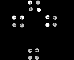 | Рис. 2.12. p-Орбитали циклобутадиена. Коэффициенты рассчитаны по методу Хюккеля (все С=1/2). | |