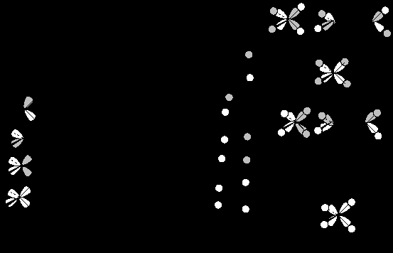 Для построения молекулярных орбиталей этана, этилена, ацетилена и других более крупных молекулы проще всего воспользоваться методом «небольших строительных блоков». В самом деле, этан является соединением двух фрагментов СН3, этилен состоит из двух фрагментов СН2, а ацетилен - из двух фрагментов СН. Пирамидальный ансамбль Н3 получается путем удаления одного из атомов водорода из вершины тетраэдрического ансамбля Н4: