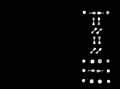 Рис. 2.26. Диаграмма орбиталей для квадратной молекулы Н4