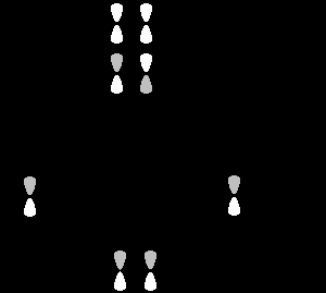Когда реагируют между собой достаточно сложные молекулы Д и А, каждая из которых имеет и пустые, и заполненные орбитали, в принципе нужно рассматривать все взаимодействия как между занятыми орбиталями молекулы Д и вакантными орбиталями молекулы А, так и между вакантными орбиталями молекулы Д и занятыми орбиталями молекулы А. Единственным требованием является соответствие орбиталей по симметрии; если симметрия противоположная (когда относительно некоторой общей операции симметрии одна из орбиталей симметрична, а вторая антисимметрична), то энергия их взаимодействия равна нулю.