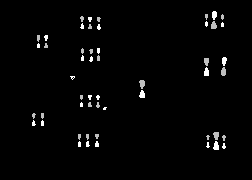 Разработан также качественный метод графического изображения молекулярных орбиталей, основанный на представлениях МО в виде определенных комбинаций «кружков» и «гантелей» (или «розеток» в случае участия d-орбиталей). Хотя этот метод и не дает точной картины, симметрию и узловые свойства орбиталей он передает правильно. Метод основан на теории ВМО. Упрощенные графические изображения МО уже были приведены на рис. 1.15-1.22. Теперь мы опишем основные правила, которыми нужно руководствоваться при графическом построении МО, и начнем с p-систем, поскольку для них эти правила наиболее просты. Молекулярные орбитали s-симметрии будут рассмотрены в разделе 2.5.