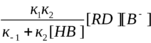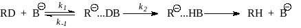 Используя принцип стационарности (разд. 3.3.6.а), для реакции СН-кислоты RD с основанием В- в растворителе НВ можно записать: