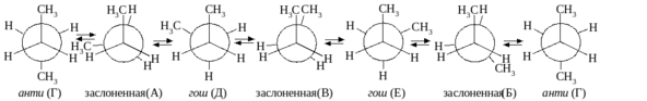 В обычных условиях при 25°С 99% молекул этана находятся в заторможенной конформации и только 1% - в заслоненной.