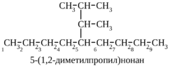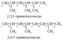 В более сложных случаях разветвленный заместитель сам обозначается в соответствии с теми же принципами по своей наиболее длинной цепи, начиная от атома, присоединенного к главной цепи: