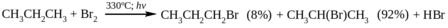 Бромирование алканов – намного более селективный процесс, чем хлорирование. Так, например, при бромировании н-пропана в газовой фазе при 330ºС получается 92% 2-бромпропана и только 8% 1-бромпропана:
