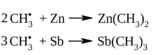 Этот вывод был затем подтвержден в других экспериментах, где вместо зеркала из свинца были использованы зеркала из цинка и сурьмы, а в качестве газа-носителя – водород, насыщенный парами тетраметилсвинца. При этом после «снятия» металлического зеркала в продуктах реакции были обнаружены диметилцинк Zn(CH3)2 или триметилсурьма Sb(CH3)3, которые могут поучиться только по реакциям: