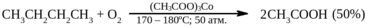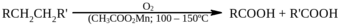 В ограниченном масштабе в промышленности используют окисление высших парафинов кислородом воздуха при 100 – 150ºС в присутствии ацетата марганца как катализатора. Окисление происходит при продувании тока воздуха через расплавленный парафин, содержащий соль марганца. В результате разрыва углерод-углеродной связи образуется сложная смесь кислот с нормальной цепью:
