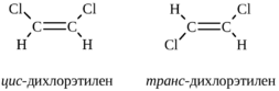 Конфигурационные изомеры в общей номенклатуре различаются префиксами цис- и транс. В цис-изомере одинаковые заместители при смежных углеродных атомах двойной связи лежат с одной стороны плоскости симметрии молекулы, а в транс-изомере – с разных сторон этой плоскости: