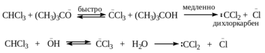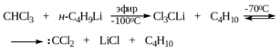 В качестве основания можно использовать литийорганические соединения в индифферентной апротонной среде. Тогда при – 120ºС можно зафиксировать образование трихлорметиллития в качестве интермедиата: