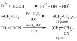Поливинилхлорид, полученный при радикальной полимеризации хлористого винила, имеет среднюю молярную массу около полутора миллионов. Он используется для производства труб, грампластинок, а пластифицированный эфирами фталевой кислоты поливинилхлорид применяется для изготовления искусственной кожи, плащей, изоляционных материалов и шлангов. Тефлон, имеющий молярную массу около двух миллионов, устойчив к действию концентрированных кислот, расплавленных щелочей и щелочных металлов при температур до 300ºС. Полиакрилонитрил известен как синтетическое волокно под названием орлон, акрилан. Этилен подвергается радикальной полимеризации в очень жестких условиях при температуре 100 – 300ºС и давлении от 100 до 3000 атм. в присутствии кислорода или перекисей как инициаторов. При этом получается так называемый полиэтилен низкой плотности, представляющий собой аморфный, пластичный полимер с температурой размягчения около 110ºС.