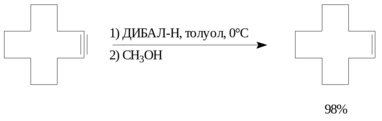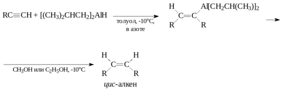 Для стереоспецифического восстановления диалкилацетиленов до цис-алкенов очень удобным и доступным реагентом оказался диизобутилалюминийгидрид (i-C4H9)2AlH, сокращенно называемый ДИБАЛ-Н:
