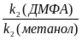 Скорость взаимодействия двух разноименно заряженных ионов также уменьшается при увеличении содержания воды в бинарной системе этанол—вода: