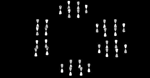 Для плоского квадратного циклобутадиена расчет по Хюккелю или использование круга Фроста приводят к триплетному основному состоянию и нулевой энергии делокализации, так как энергия -электронов на одной связывающей и двух несвязывающих орбиталях (см. рис. 12.2) равна 2(, т.е. такая же, как и для двух независимых двойных связей. Рассмотрим, что предсказывает теория Хюккеля для плоского циклооктатетраена, содержащего восемь -электронов. Три -орбитали циклооктатетраена являются связывающими, три - разрыхляющими и две - несвязывающими, т.е. они имеют ту же энергию (), что и исходные атомные орбитали. Шесть -электронов попарно размещаются на трех связывающих орбиталях, но оставшиеся два -электрона должны располагаться на несвязываюших орбиталях. В соответствии с правилом Гунда эти электроны по одному заполняют две вырожденные несвязывающие орбитали, причем их спины параллельны. Следовательно, метод МОХ предсказывает, что плоский сопряженный циклооктатетраен должен быть триплетным бирадикалом. Известно, что триплетные бирадикалы относятся к числу крайне нестабильных частиц, легко претерпевающих дальнейшие превращения. Согласно экспериментальным данным, сопряженный циклооктатетраен имеет неплоское строение с чередующимися двойными и одинарными связями и существует в форме двух взаимно превращающихся друг в друга конформаций ванны: