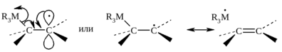 Радикалы типа R3MCH2CH2• (M = Si, Ge, Sn) имеют заслоненную конформацию за счет pd-гомосопряжения связи C – M с полузаполненной орбиталью радикального центра: