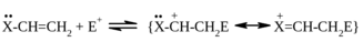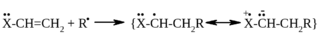 В заключение следует отметить, что часто для объяснения ориентации радикального присоединения используют аргументацию, аналогичную аргументации при объяснении ориентации электрофильного присоединения. При электрофильном присоединении (гл. 5) образуется тот из двух карбокатионов, который более стабилен из-за сопряжения с соседним гетероатомом, несущим неподеленную пару электронов: