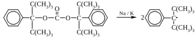 В этом радикале две трет-бутильные группы блокируют радикальный центр, препятствуя димеризации, а сам радикал образуется следующим образом: