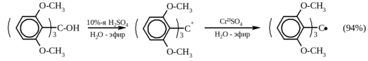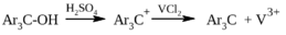 В качестве восстановителя в этом случае следует применять соли ванадия (II), хрома (II), титана (II). Триарилметил-катион образуется при растворении триарилметилкарбинолов в серной, трифторуксусной кислотах или, в отдельных случаях, в смеси уксусной и хлористоводородной кислот: