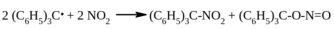 Это означает, что радикал атакует оба центра мезомерной системы оксида азота (IV). Активные радикалы присоединяются по пара-положению ароматического кольца триарилметила: