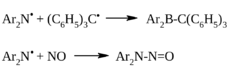 Образование диариламинильных радикалов подтверждается изменением окраски раствора, ЭПР-спектрами и их взаимодействием с известными акцепторами радикалов – оксидом азота (II), трифенилметилом и другими радикалами: