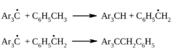 Триарилметилы способны отщепить атом водорода от метильной группы толуола при нагревании выше 100ºС: