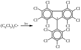 Еще более стабилен перхлорбензил C6Cl5CCl2•. Он получается их перхлортолуола в результате отщепления одного атома хора с помощью меди: