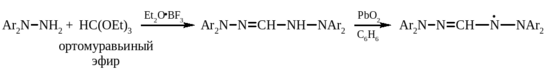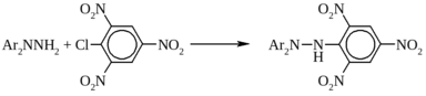 Этот метод и в настоящее время является общим для синтеза других триарилгидразилов. Исходные соединения для синтеза гидразилов получают при взаимодействии 1,1-диарилгидразинов с тринитро- или динитрохлорбензолом:
