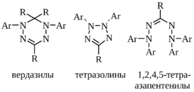 Аналогами гидразильных радикалов являются так называемые гидразидильные радикалы. Термин «гидразидильный радикал» был введен в химии стабильных радикалов для того, чтобы объединить одним названием группу генетически связанных между собой радикалов – вердазилы, тетразолилы и 1,2,4,5-тетраазапентенилы: