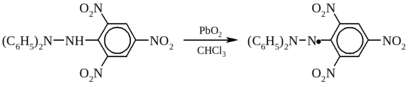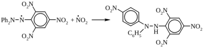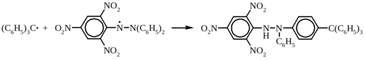 Многие гидразилы принимают участие в реакции рекомбинации как со стабильными, так и с активными радикалами с образованием тетразамещеных гидразинов. Трифенилметил присоединяется к ДФПГ: