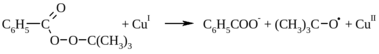 Аналогично происходит разложение пероксиэфиров, катализируемое солями меди (I):