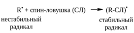 Если радикалы нестабильны, то их стационарная концентрация в растворе настолько мала, что с помощью прямого снятия спектров ЭПР, даже в проточной системе, часто бывает очень трудно доказать их участие в качестве интермедиатов в реакциях органических соединений. В таких случаях можно использовать так называемые спин-ловушки (ловушки радикалов). Спин-ловушка обычно содержит двойную связь, по которой присоединяется короткоживущий радикал, при этом образуется новый радикал, обладающий значительно большей стабильностью, чем исходный: