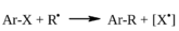 В подавляющем большинстве случаев замещаемой группой является водород, т.е. X = H. Нибольшее синтетическое значение имеет реакция арилирования (R = Ar), которая используется для получения диарилов. В связи с этим мы рассмотрим ее более детально, тем более, что именно для этой реакции имеется много количественных данных.