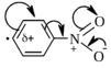 Легко видеть, в случае хлорфенильного и особенно нитрофенильного радикала процент мета-замещенных производных повышается сравнительно со случаем незамещенного фенил-радикала. Иными словами, хлорфенильный и нитрофенильный радикалы проявляют определенные электрофильные свойства в связи с наличием в пара-положении не только неспаренного электрона, но и наведенного частичного положительного заряда, например:
