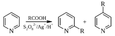 Алкильные радикалы в этих реакциях обычно генерируют путем катализируемого солями серебра (I) окисления соответствующих карбоновых кислот пероксидисульфатом: