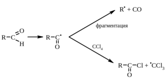 Реакции фрагментации приводят к образованию не продукта присоединения, а продукта замещения: