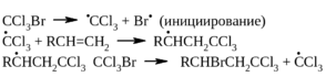 Если при этом молекула RZ служит также первоначальным источником радикалов, то образуется 1:1-аддукт алкена и реагента-переносчика. Например:
